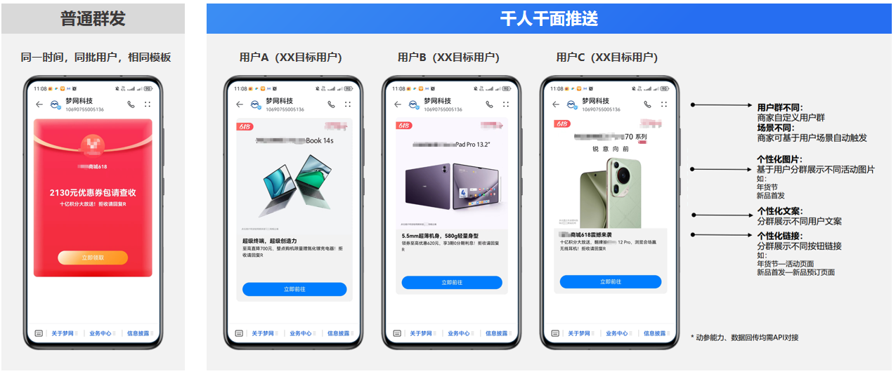 给予发送、渲染、曝光、点击全路径数据可视,洞察用户偏好,顺利获得专业运营团队,给予营销内容创意、标签圈选建议和效果优化等全方位服务,助力企业提升营销效果。这些反馈和分析可以帮助企业或品牌在营销运营过程中,及时调整策略。