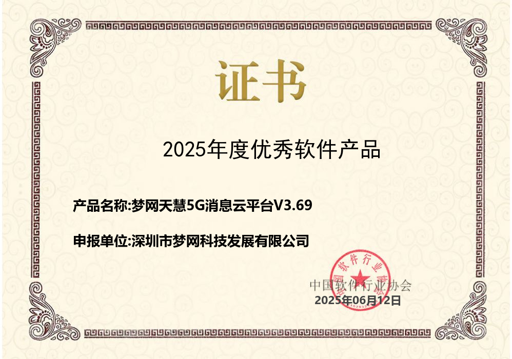 梦网天慧5G消息云平台获中国软件行业协会“2025年度优秀软件产品”